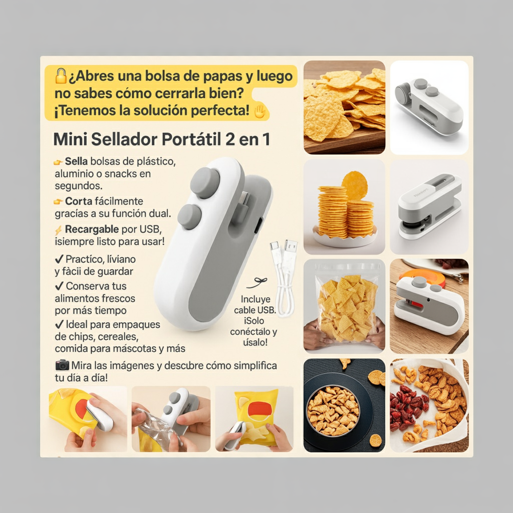 Conoce nuestro Mini Sellador Portátil 2 en 1: la herramienta imprescindible para tu cocina.